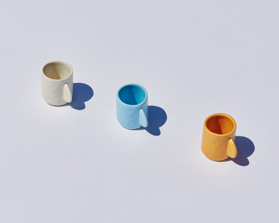 Philadelphia ceramics company Felt+Fat (named for two of mid-20th-century artist Joseph Beuys’s favourite materials) specializes in Barragán-esque colours and eye-catching proportions. Its solid slipcast, hand-finished porcelain clay tableware – including these alluring espresso cups with disc handles and softly uneven surfaces – encourages discreet caresses. Espresso cups at Biscotteria Forno Cultura, Union Station. $25.