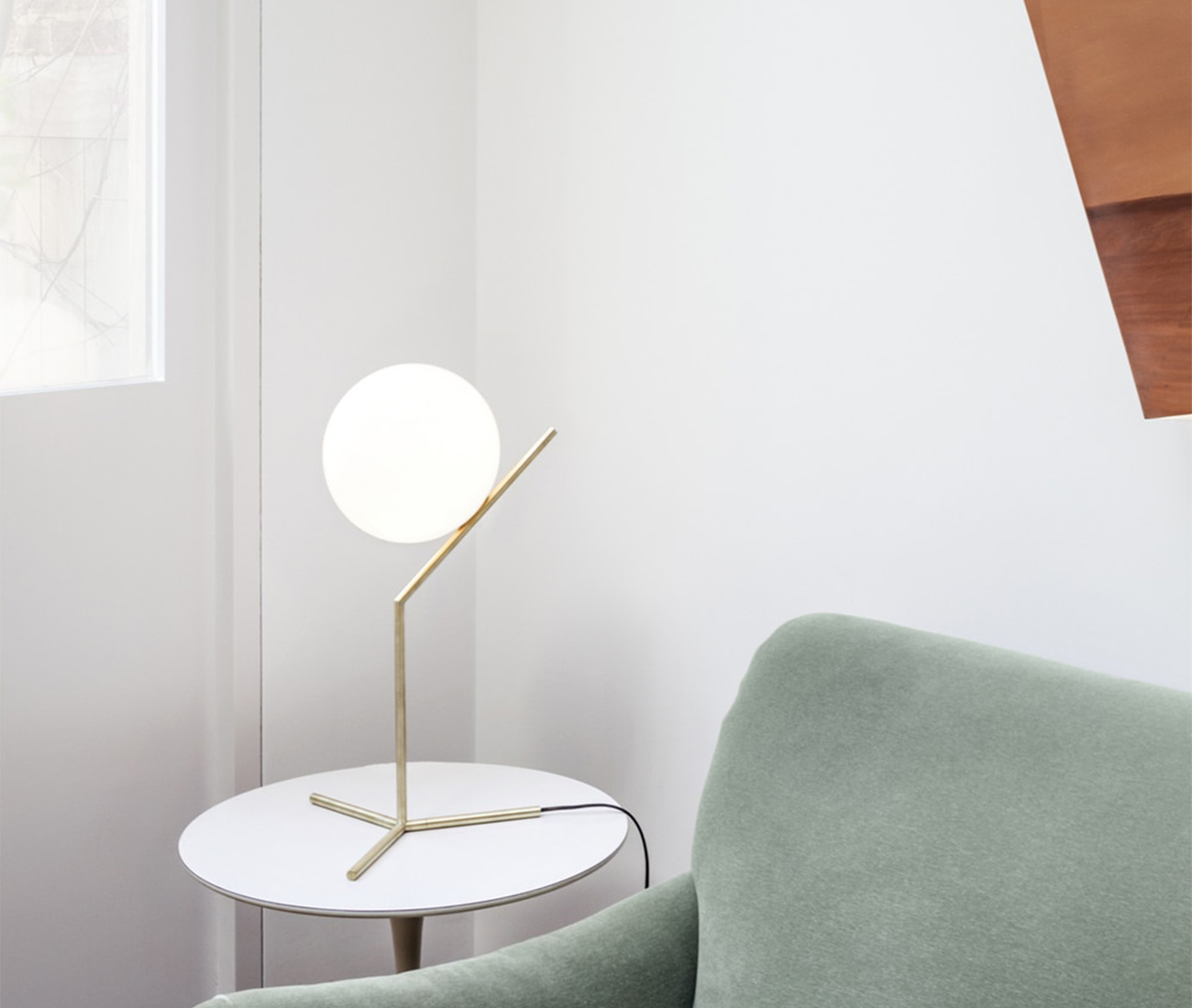 Flos’ ultra-sleek T1 Table Lamp features a blown-glass opal that carefully rests on an elongated, angled frame. Available in brushed brass, chrome and matte black, its elegant design creates a soft halo that’s ideal for the living room or bedroom. From $695, at Lightform.