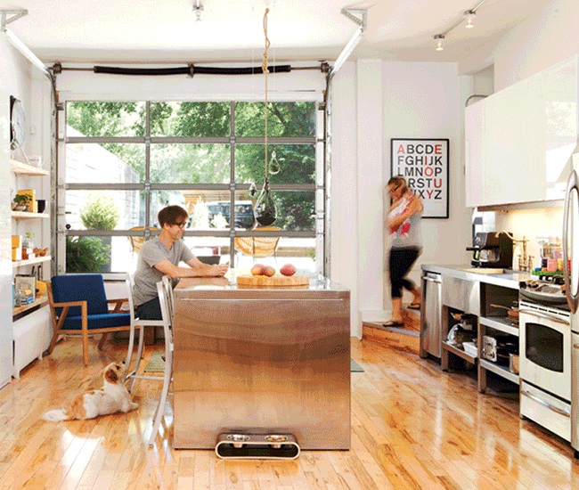 A glass-paned garage door opens onto a sun-drenched garden in this former dry goods store in Mimico. Other winning additions: shelving made from scaffolding planks, a ladder leading to a rooftop hideaway and a rough-hewn, barn-style door in between master bedroom and bathroom suites. Find out how the owners of Stylegarage did it.