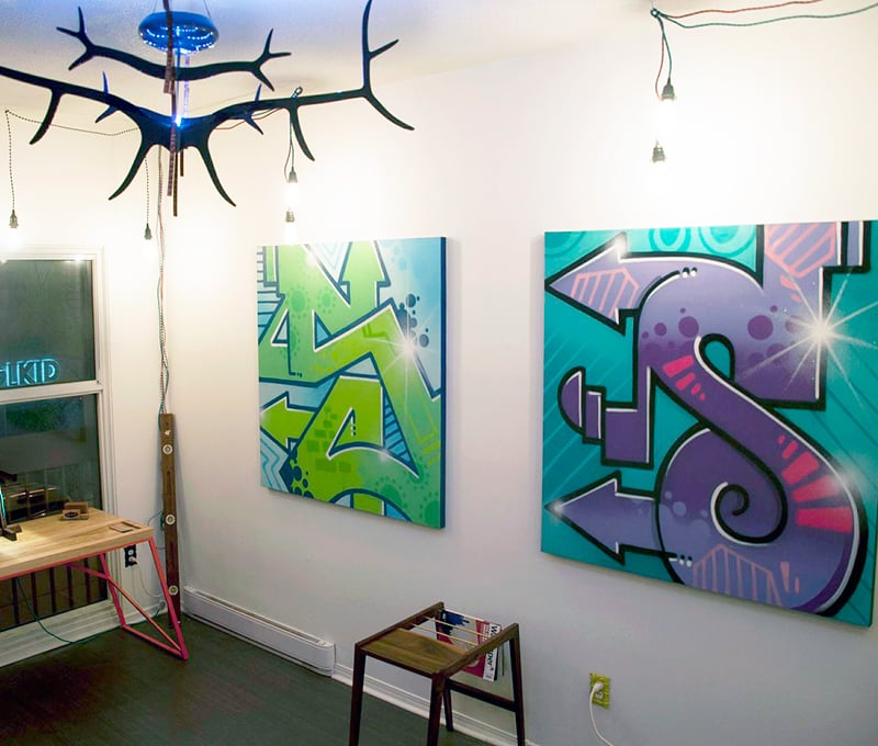 UPPER 751 is an experiment in multi-purpose, urban living. The space fluctuates between residence, studio and gallery, overlooking a bustling stretch of Queen Street West. A crew of skilled artists, designers and craftspeople were given free reign to exercise their creativity and present work that best showcases their talents, including printmaking, illustration, furniture design, upholstery, sculpture and lighting. Participants include local graffiti artist Dudeman, Doug Brown, Peter Bogaczewicz and more.