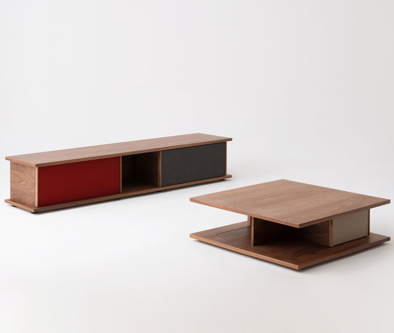 This new series by Tom Chung for EQ3 – which includes a low media unit and a coffee table and is available in oak or walnut – has these fabulous felt panels, which are actually customizable, so you can put your own stamp on the piece.