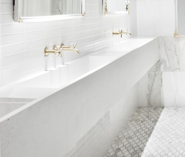 Brass Kohler Purist faucets shine in Commute Design’s award-winning washroom for Spanish restaurant Patria (478 King St W). Wall-mounted with separate cross-shaped handles for hot and cold, the regal fixtures are a fresh spin on traditional basin taps. They complement such other opulent details as floor-to-ceiling marble and gilded frame mirrors. $945, at Atlantis Bath Centre