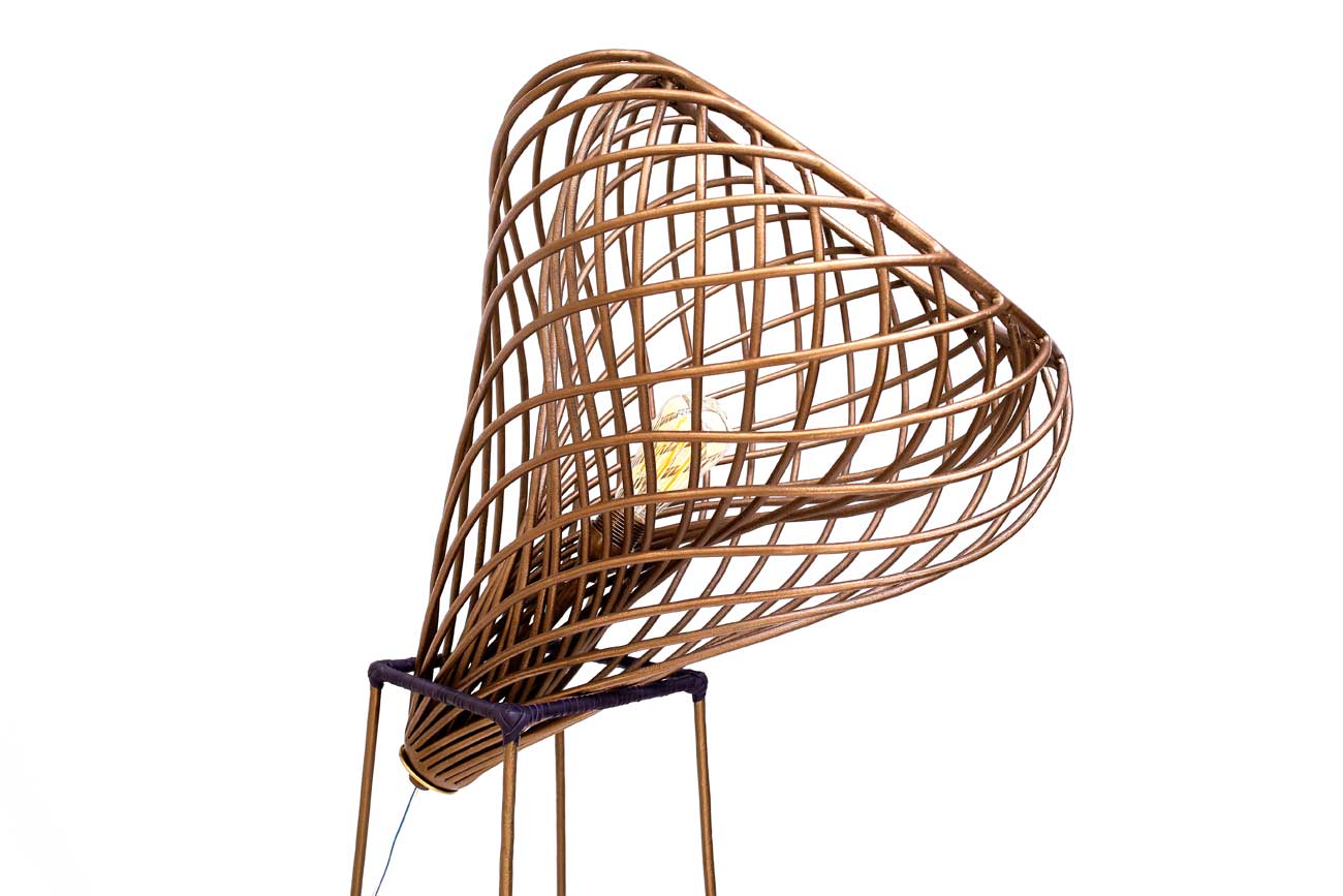 Through breakout collections, Adeoye evolved her understanding of sculpted metal, and it has now emerged as the primary material in Studio Lani’s 2020 lighting collection. The series features innovative lamps designed to hang from the ceiling, rest upon the floor or balance delicately within a larger frame, depending on the mood. Once illuminated, these hand-formed nests create dynamic shadow play around a room.