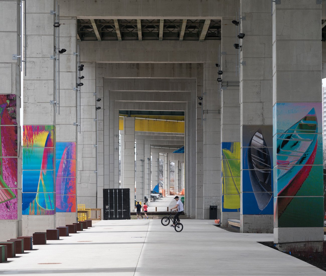 The Bentway Skate Trail with Dana Claxton’s installation A Forest of Canoes, co-curated by the Scotiabank CONTACT Photography Festival. Sean Galbraith.