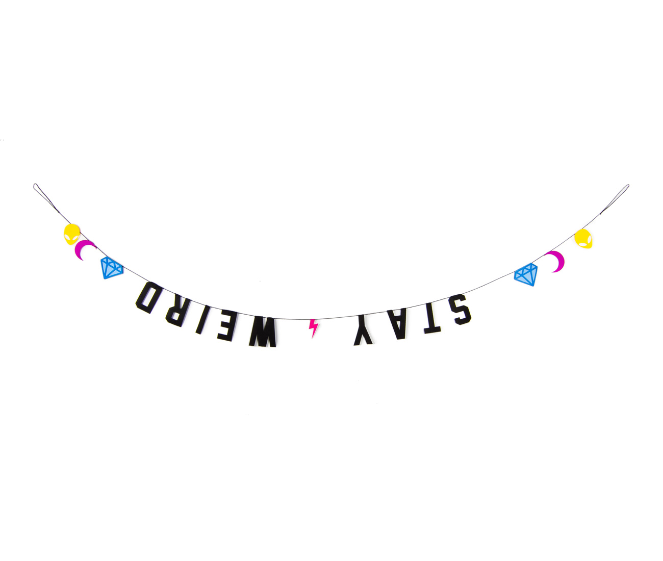 Don’t grow out of it with this quirky felt garland. Featuring upside-down lettering and graphic power-boosting shapes, it’s the accessory every misfit can rally around. Garland, $20, at Drake General Store.