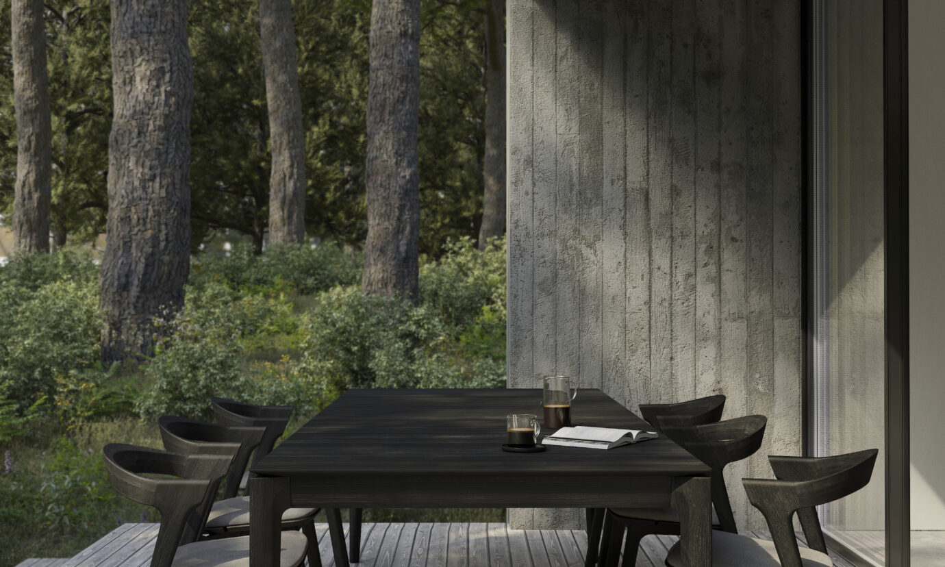 Made from 100% solid teak, the Bok Outdoor dining table & chairs by Ethnicraft have been meticulously designed for use in the open air with a weatherproof varnish. $1,519 (chair); $4,509 (table), at Maison Corbeil.
