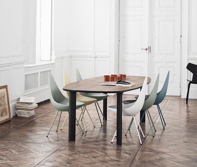 Jaime Hayon’s eight-seater, available in white laminate, oak and walnut veneer, pairs well with Arne Jacobsen’s reissued bucket seats. Call for pricing, at Torp Inc.