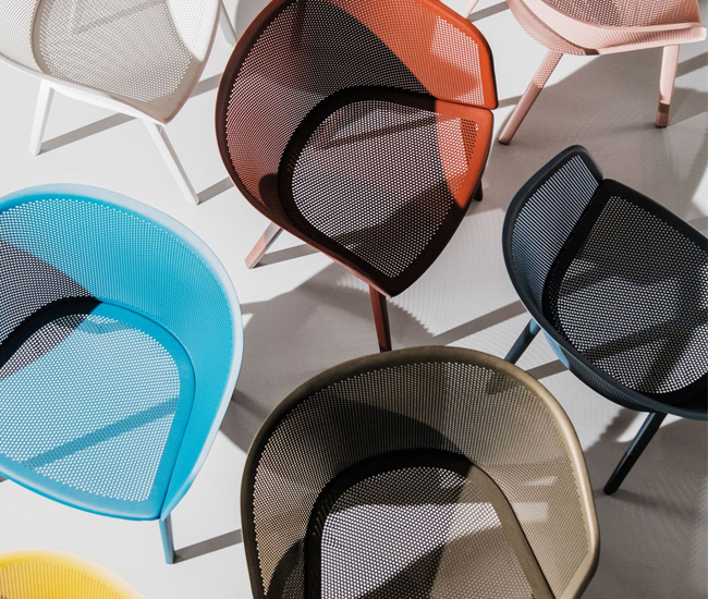 Like a knight’s chain-mail hood, Kettal’s cupped aluminum Stampa chair appears both fluid and sturdy. Designed by Ronan and Erwan Bouroullec, the outdoor seater gains a distinguished patina over time. $1415, at Studio B