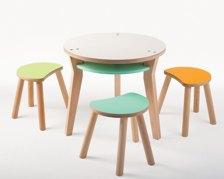 Have children and want to save space? Meet the Bobbin table. Featuring a maple ply-top finished with durable laminate, this four-piece set from Three Pears is sturdy enough to handle snacks, crafts and whatever your kids throw at it. Compact nesting stools, which can be stashed under the table, complete the look.
