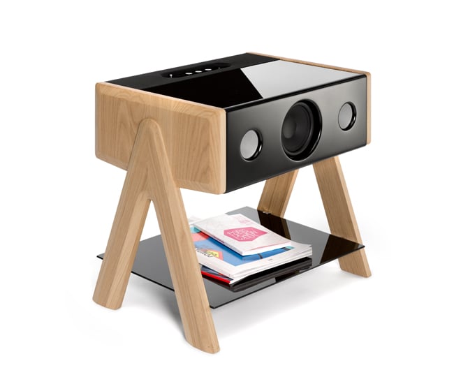 La Boite Concept’s genius side table–slash-stereo system is fully tuned into modern listening habits. Rest your laptop on the top shelf, or DJ wirelessly from a smartphone. Six speakers direct crisp audio to every corner of a room. laboiteconcept.com