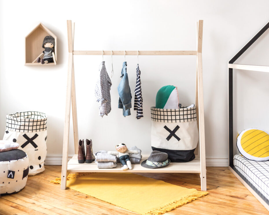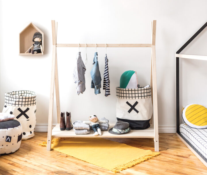 Designed to be in reach of kids and grownups, this handy birch coat rack offers a wide bottom shelf for laundry baskets and off-season footwear. Featured in Five Modern Pieces for Kids (That You’ll Love Too). Available at Kids at Home.