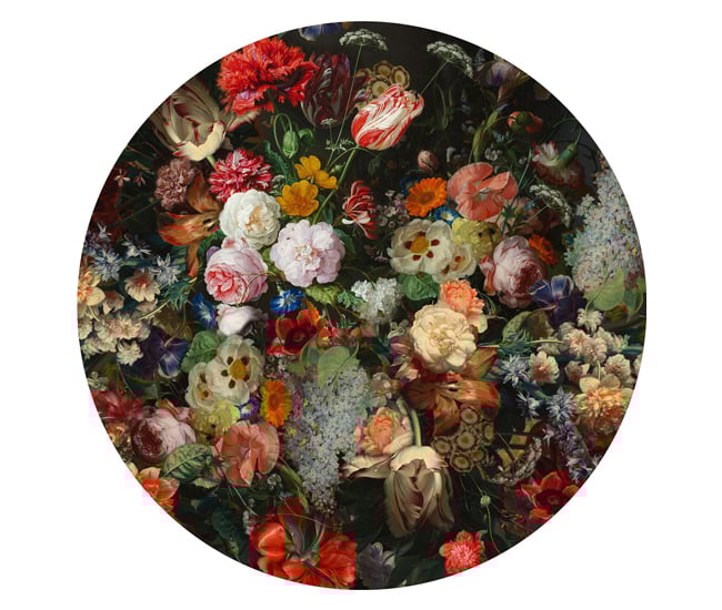 The dense, hyper-realistic floral pattern on this woven, Marcel Wanders-designed circular carpet recalls the beautifully kooky fantasy lands described in Lewis Carroll stories. moooicarpets.com