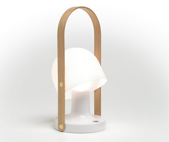 Rechargeable via a USB port, Marset’s compact white polycarbonate FollowMe lamp includes an oak handle for easy carrying on stargazing treks. A dimmer switch controls the LED’s intensity. marset.com