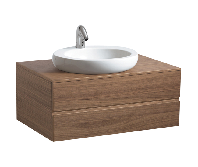 Laufen’s latest wall-mounted washbasin features two soft-closing drawers separated by a clean cut-out lip. Choose from surface-lacquered wood veneer or lacquered white with a marble top.