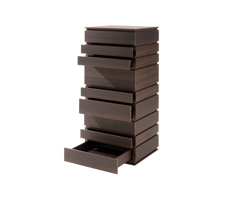 Alessandro Dubini’s chest for Lema contains nine drawers of various heights, made of thermo-treated oak in a tobacco finish. lemamobili.com