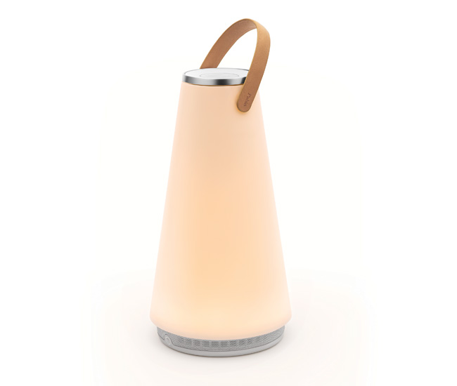 Carry on the dance party long past sunset with this portable lantern and Bluetooth speaker. The rugged polycarbonate-and-steel shell will survive frequent trips to the beach, while a dapper leather carrying strap adds sophisticated style. As the night winds down, dim the lights with the touch-sensitive control dial on top. pablodesigns.com