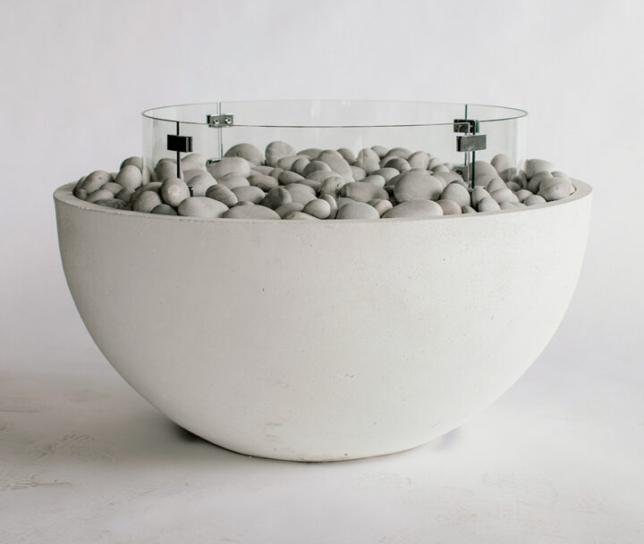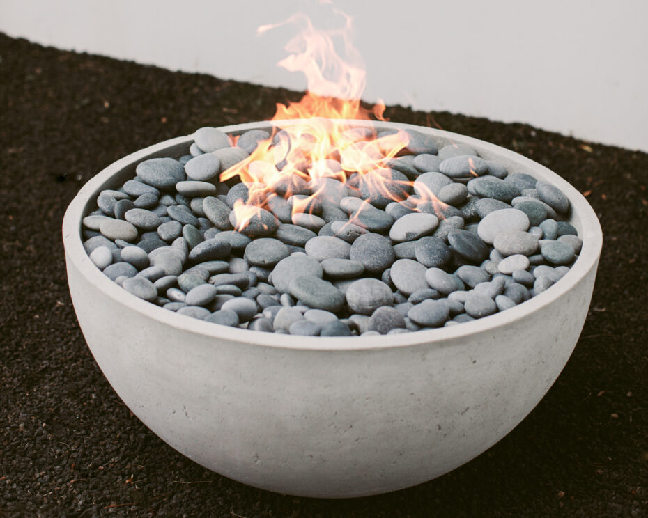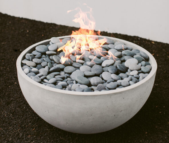 Warm your hands (and ward off mosquitoes) around this lightweight concrete fire pit handcrafted locally by Dekko Concrete. Natural gas or propane burning, it also comes with your choice of decorative rock.