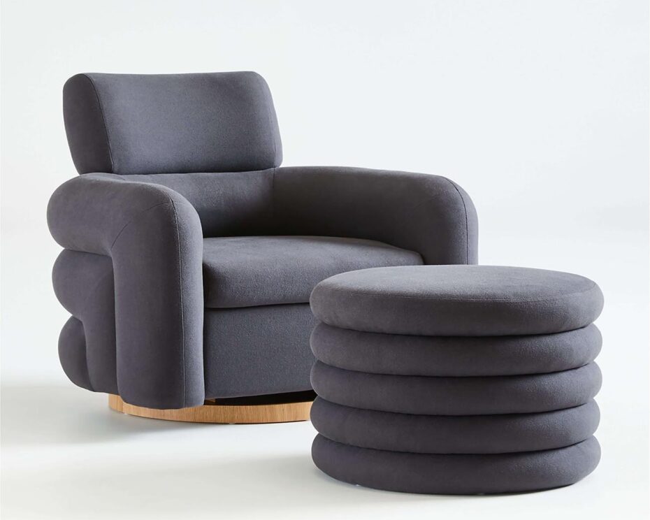 Designer Leanne Ford created this elegant-yet-inviting glider and ottoman set to serve as the ideal nursery chair. Plus, the latter doubles as storage for all those blankets you have no space for. Available in charcoal-hued denim and cream-coloured bouclé. Chair, $1,499; Ottoman, $599, at Crate and Barrel.