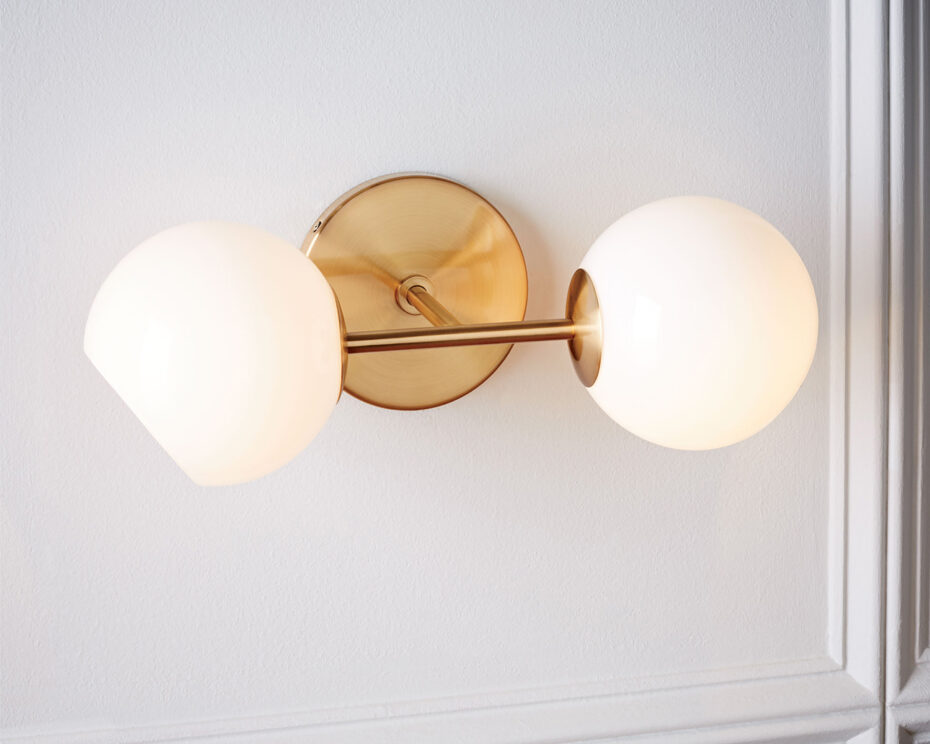 Horoscope time! No matter what your star sign, we see this enchanting, crystal ball-esque wall lamp in your future. Orb-shaped glass shades are positioned at either end of an antique brass metal stem to cast a soft glow as you brush your teeth and contemplate the cosmos. westelm.com