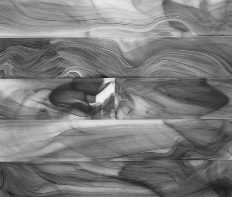 Swanky hand-blown and hand-poured glass tiles offer unique patterns for a head-turning back-splash.
