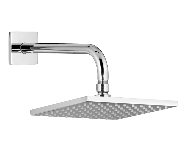 American Standard’s brass Times Square rain fixture stands out with its square-shaped head and fluid gooseneck. A safety feature restricts water tempera-ture to reduce the risk of scalding. americanstandard.ca