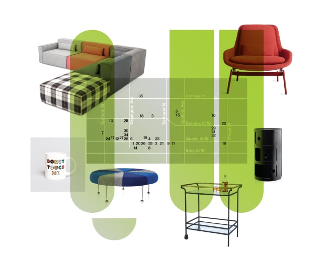 Queen West is a vogueish promenade lined with big boxes and stalwarts, dives and the always divine. With 35 stores to browse, you’ll find everything from condo-sized sofas to brass cocktail shakers. Click a pin on the map below to get more information about any of this hip design district’s hottest shops.