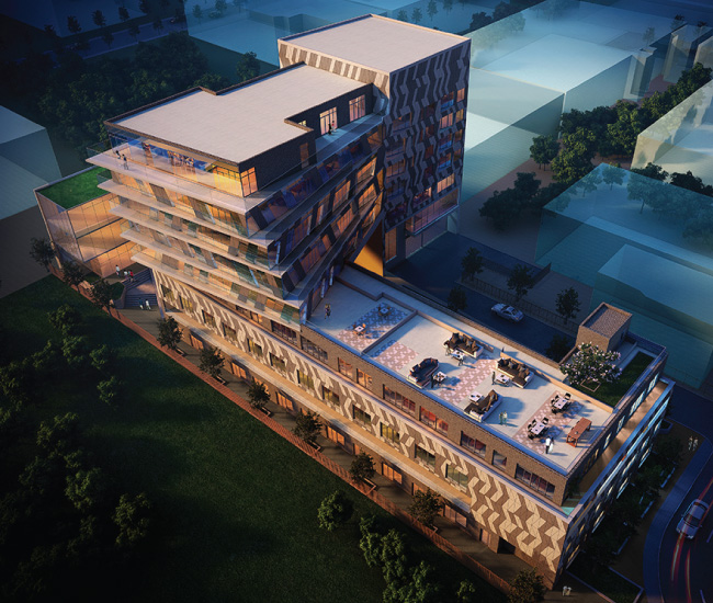 An LEED-certified development on a post-industrial site in the West Don Lands will be finished just in time to host Pan Am /Para Pan athletes. While pushing the definition of mid-rise, with one 11-storey tower and a shorter wing jutting out, lead architect Bruce Kuwabara, of KPMB, has grounded the design in charcoal brick and cobblestone – a nod to the zone’s rich history. Streetlevel entrances and a double-height lobby make the development feel inclusive; while the site’s many courtyards and storefronts, plus a YMCA and a residence for George Brown students, result in an instant community with an organic, non-CityPlace feel.