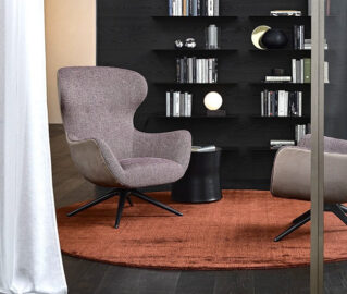 At Poliform, put your threads on full display with stand-alone wardrobes or walk-in closets with smoke glass doors and slender frames. Varenna kitchens redefine the art of cooking with ultra-thin cabinetry and integrated handles and lighting. Sprinkled throughout the showroom are such luxe furnishings as the petite Jane armchair and the multi-functional Dama, which is stool and side table in one. Bathroom furnishings are downstairs, alongside stunning tubs and washbasins by Antonio Lupi.