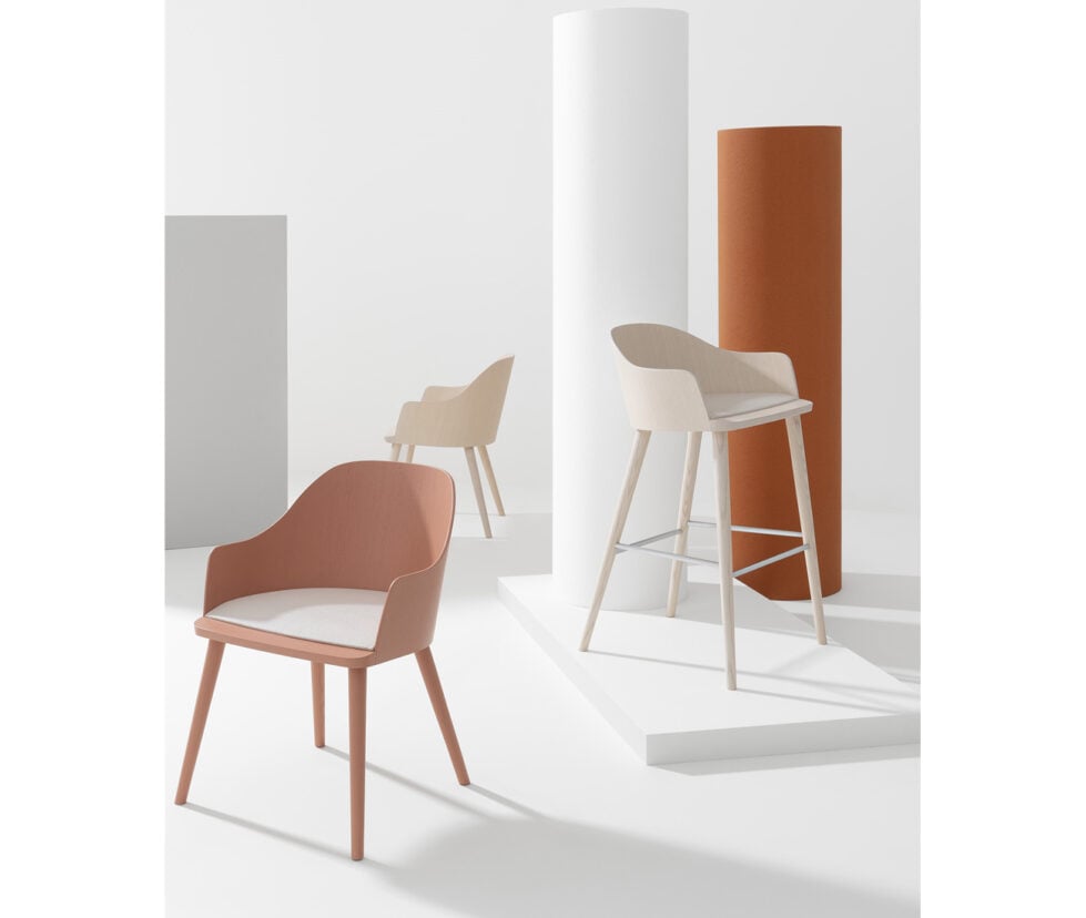 Look for Capdell’s low-slung Iconica lounge chair and Altek Italia Design’s Quizas cradle-like cushioned wire mesh armchair. Inclass’s polyethylene bases and tabletop options make for endless configurations to safely adapt to shared ways of working – together but separated.