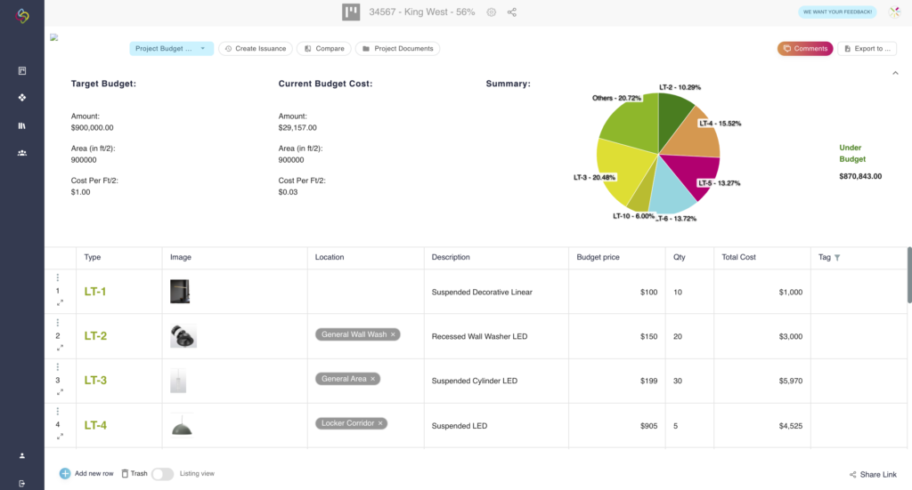 Meanwhile, Sourcery’s comprehensive interface and real-time calculations make it easy to confirm if a project is within budget, and to see exactly where dollars are being spent — reducing the risk of financial surprises and unforeseen setbacks down the road. And to help integrate with the rest of your workflow, schedules and library information can also be easily exported and saved as a local Excel file.