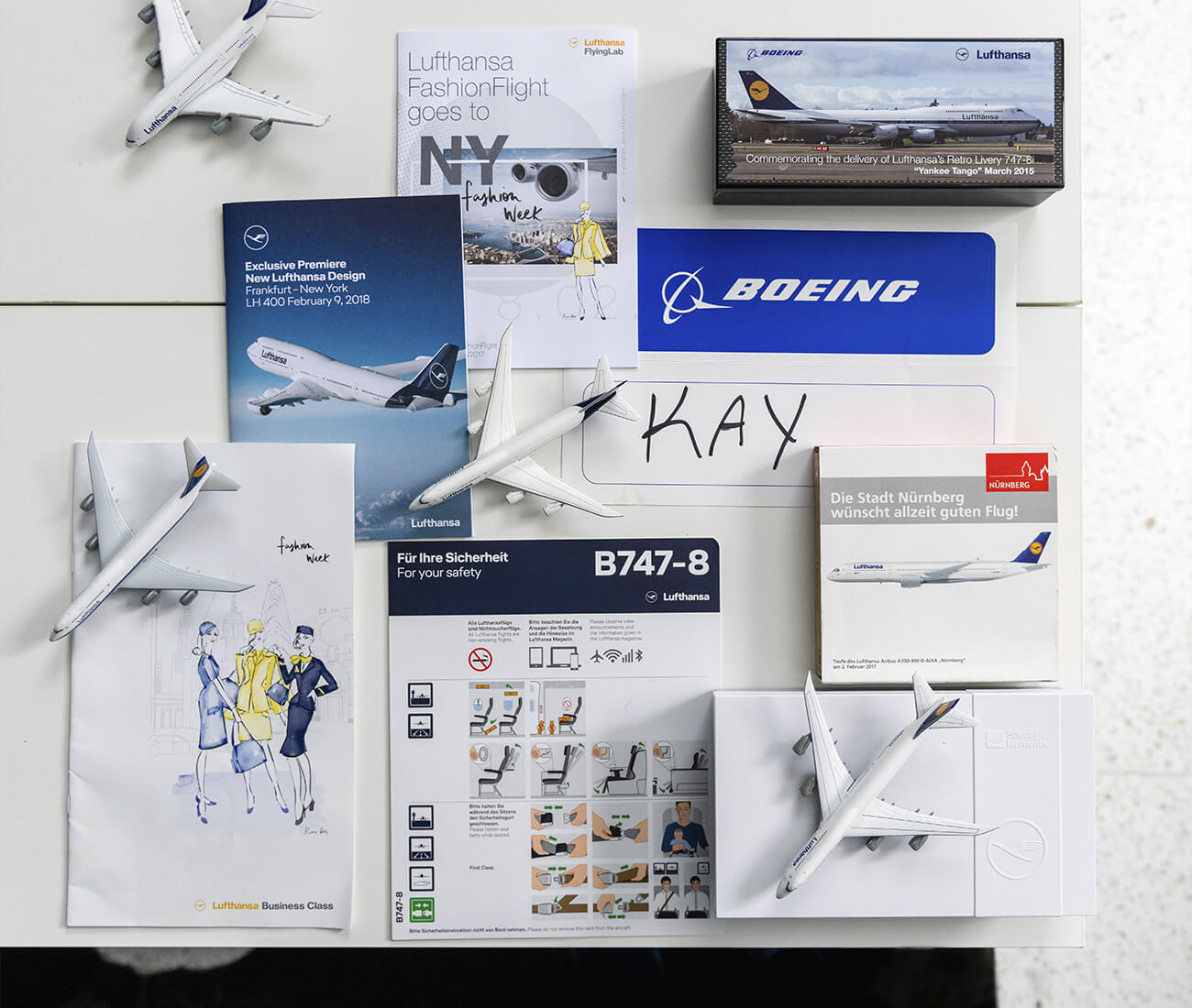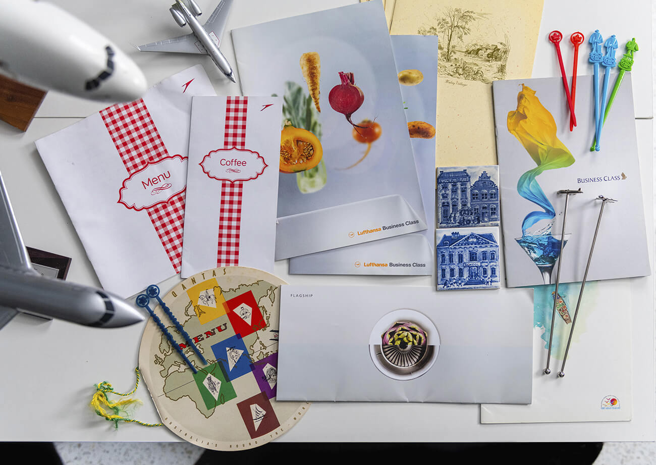 Laird: I collect aviation memorabilia – from onboard menus, amenity kits, airplane models, airline soft products. I even have three windows from a 747 (my favourite plane). These objects remind me of the romance of travel, and the magic of flight.