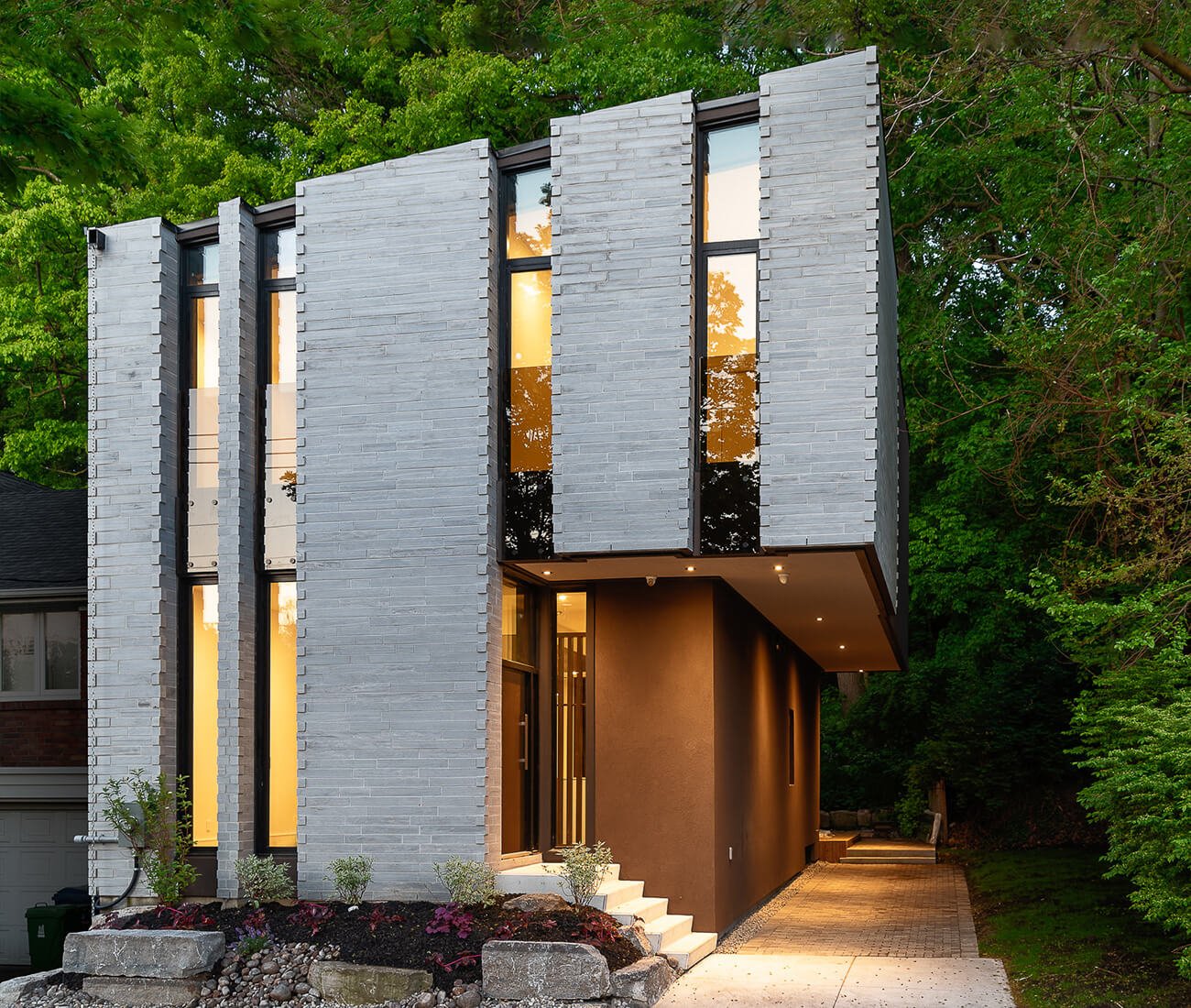 Clad in Eramosa stone, ravine house features precisely corbelled corners, creating a modern version of the quoins seen on traditional Arts and Crafts homes.