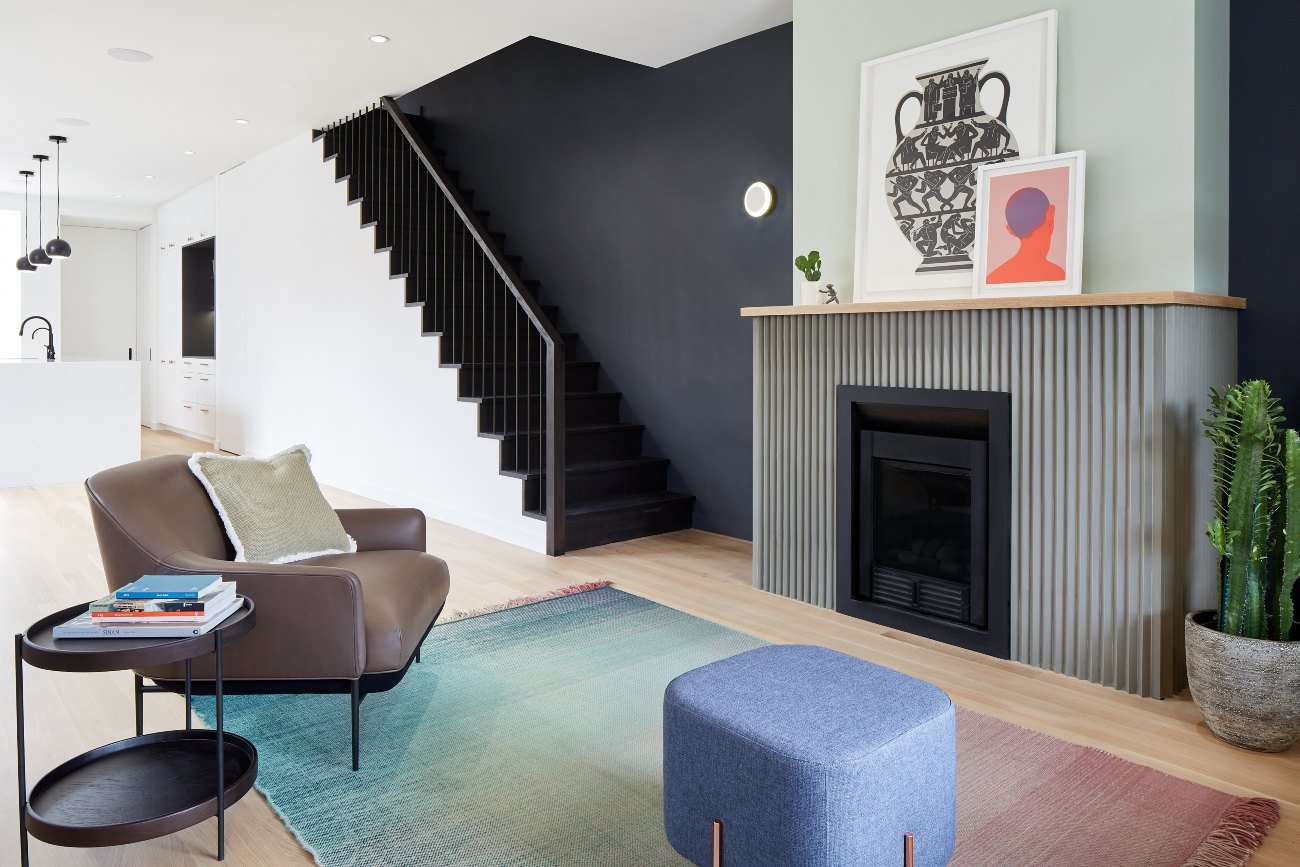 Anne-Marie Armstrong and Andrew Ashey of AAmp Studio proposed for the Edwardian home an open-plan concept centred around a dramatic staircase, blending bold colours and modern textures. A striking black and white palette introduces bold contrast and depth throughout the home. “Texture and colour were something the clients really embraced from the beginning, and that gave us a chance to play with various aspects,” says Armstrong.