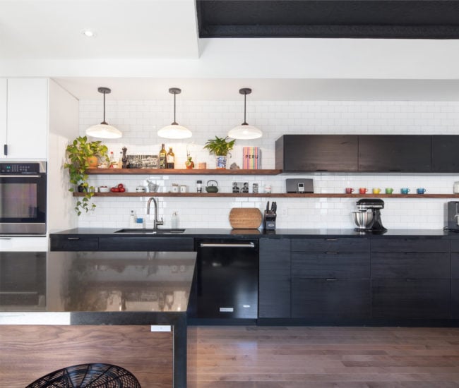 It’s pretty clear why you loved this kitchen reno in Trinity Bellwoods. Who wouldn’t want to take the bistro experience home with them? The striking tin ceiling, painted black for a high-contrast look, is a standout. But it’s the classics, such as a subway-tile backsplash and trio of pendant lamps that make the source material accesible to all.