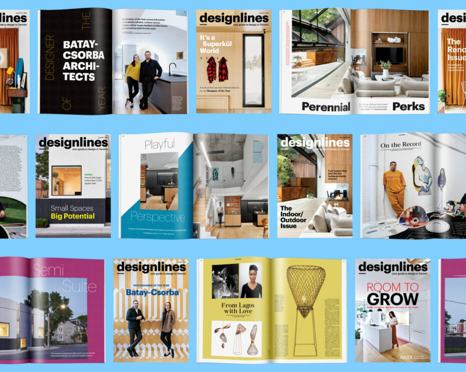 Looking for some locally sourced home inspo? Our Indoor/Outdoor issue features four homes that blur the line between inside and out, including a glass-clad split-level, a condo overlooking St. James Cathedral, a worker’s-cottage-turned-light-bending-bungalow and – our cover story – a ravine-side abode complete with a hangar door and reflective titanium facade. Plus, you can catch up on all the latest trends in design, learn about the city’s latest labels, check out some of the best patio furniture available in Toronto, and much more.