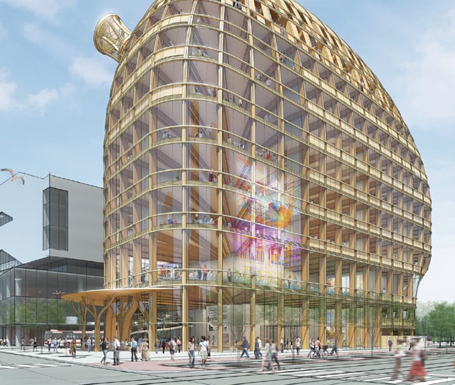 Moriyama & Teshima Architects and Acton Ostry Architects – from Toronto and Vancouver respectively – provided the winning plan. The team’s proposal beat out some stiff competitors, including Pritzker Prize laureate Shigeru Ban, who has already built a number of timber buildings. Patkau Architects of Vancouver, in collaboration with MJMA of Toronto, were also in the running, along with Montreal firm Provencher_Roy, working with Toronto’s Turner Fleischer.