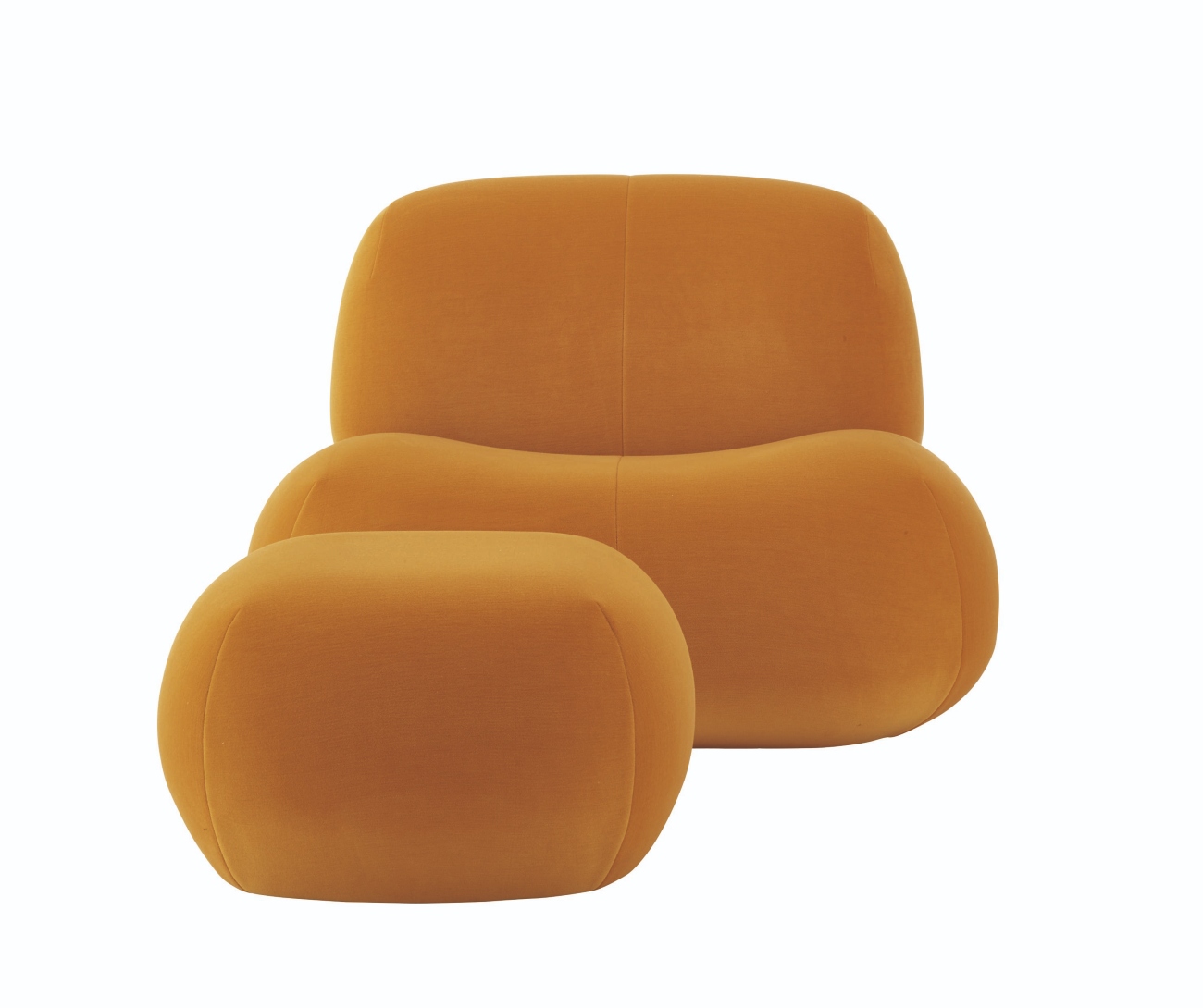 Designed by Yabu Pushelberg, Ligne Roset‘s Pukka armchair and ottoman were inspired by a Gaetano Pesce’s Up5 chair and Up6 ottoma, whose curves are even more pronounced than those found here. Armchair, $2615, and ottoman, $1025, at Home Société.