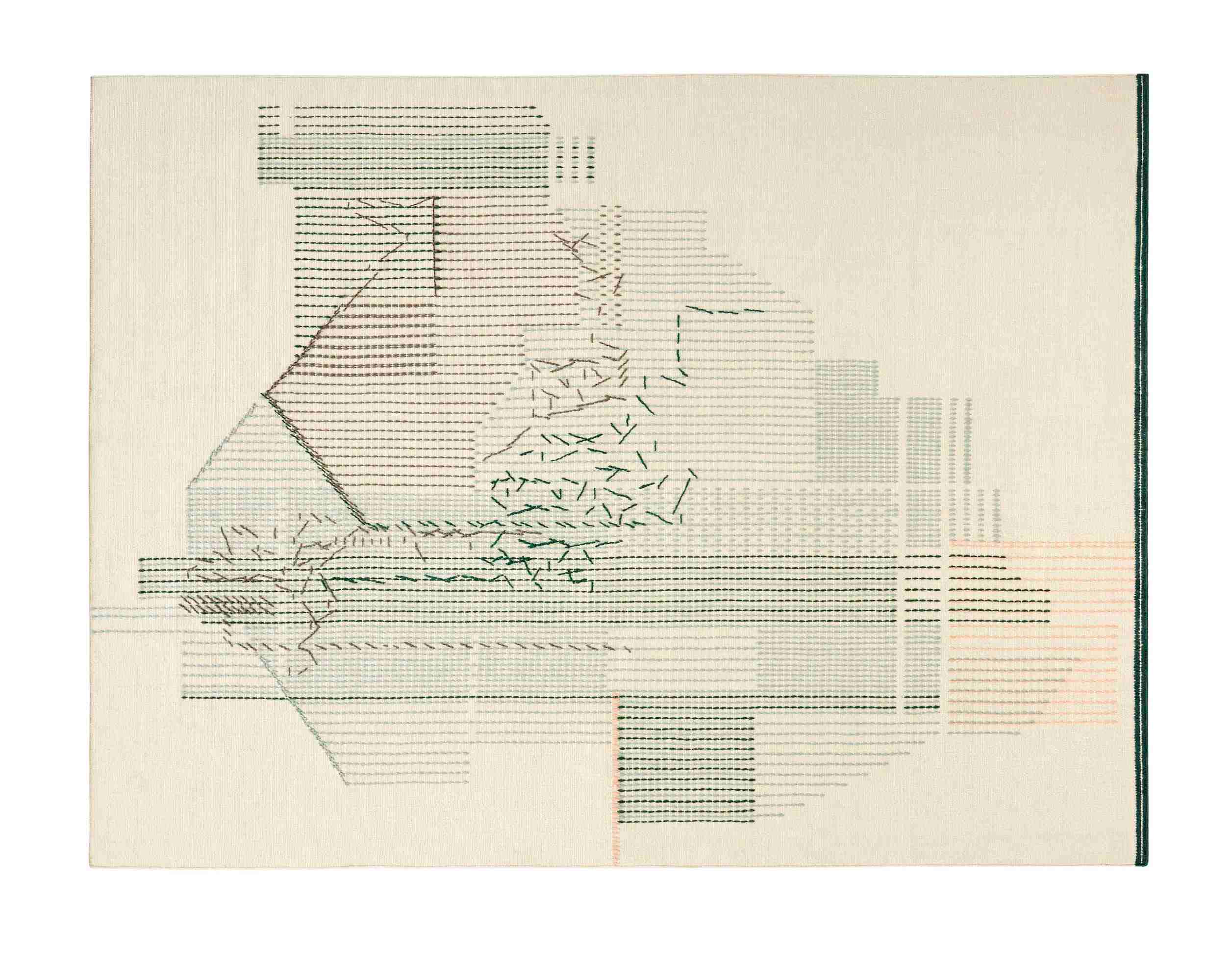 Low-key and calming, sage green is the chromatic opposite of this past year. Gan’s Backstitch area rug is likewise a reversal, showing off the stitching which is usually left to the underside. $2775, at Quasi Modo Modern Home.